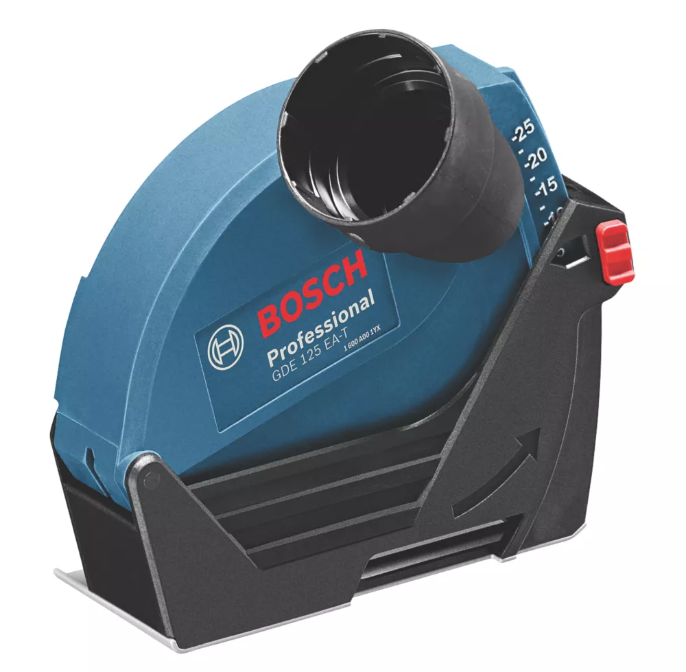 Easy to adjust. Can be mounted in 2 steps without disassembling the disc or protective guard. Shape is optimised for clean and tidy operation. Adjustable cutting depth is ideal for work requiring precision. Compatible with Bosch Professional angle grinders with a 125mm disc diameter and tool-free adjustable protective guard. Also compatible with the Click & Clean dust extraction system.