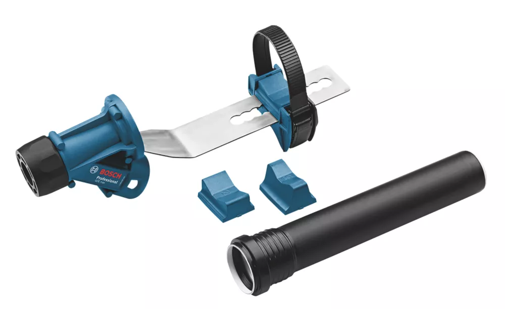 Practical and effective solution for dust-free chiselling. Enables clean and tidy work, reduces cleaning times and improves user safety protection. Convenient and flexible. Can be quickly and easily attached directly onto walls and be adapted for various working positions. Allows changing chisels without dismounting dust extraction unit. Designed for use with the Bosch Click & Clean System. Universal compatibility with SDS max hammers.