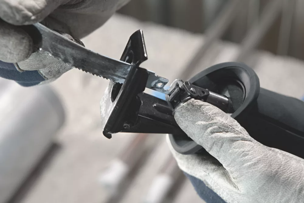 Tool-free lever blade adjustment system with sawhook for easy hanging and storage. Supplied with 2 blades and carry case.