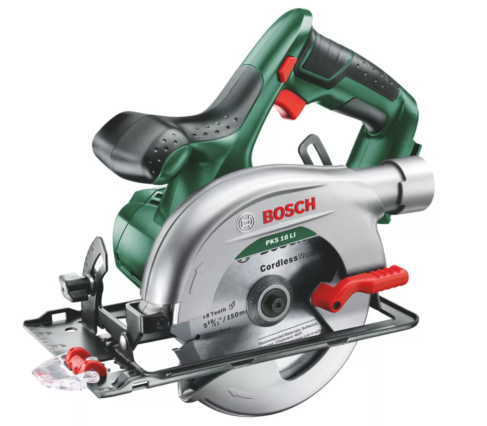 Provides cordless mobility for versatility when cutting. Parallel guide maintains a straight cutting line. Adjust various cutting depths and angles quickly and easily. Designed for straight cuts in wood and wood-based materials. CutControl provides orientation, allowing exact cuts along drawn lines. The attachment for vacuum cleaners minimises mess when cutting with a direct connection that sucks up particles on the spot. Spindle lock enables easy saw blade changes. Part of the Bosch Green Power for All alliance system, where an 18V battery can operate a large variety of tools from different brands (battery sold separately).