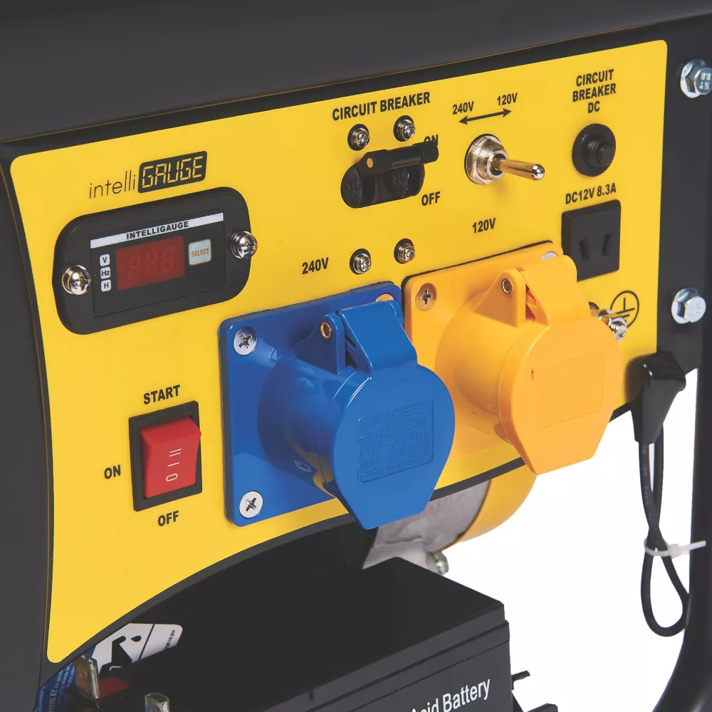 Reliable frame type petrol generator with a 224cc 4-stroke OHV engine. Suitable for construction sites, powering home appliances or running outdoor events. Features push button electric start and low oil shut off sensor.