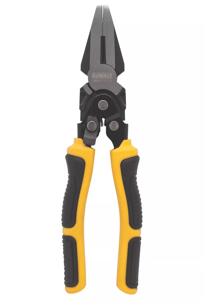 Compound-action cobination pliers with induction-hardened cutting blades, giving up to 70% more cutting power over standard cutting pliers. The bi-material handle allows for a strong grip and provides added comfort.