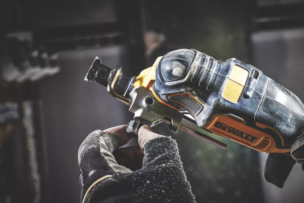 Oscillating multi-tool with brushless motor delivering up to 57% more run time over DeWalt brushed motors. All-metal gearing for improved durability and performance. Lightweight for easy handling and dual-grip, variable speed trigger provides ultimate speed and application control. Quick-Change accessory system allows blade and attachments to be swapped without the use of tools. Bright LED light illuminates dark work surfaces for accurate cutting. Includes universal accessory adaptor for use with most brands of oscillating tool accessory. Supplied with 29 piece cutting and sanding accessory set.
