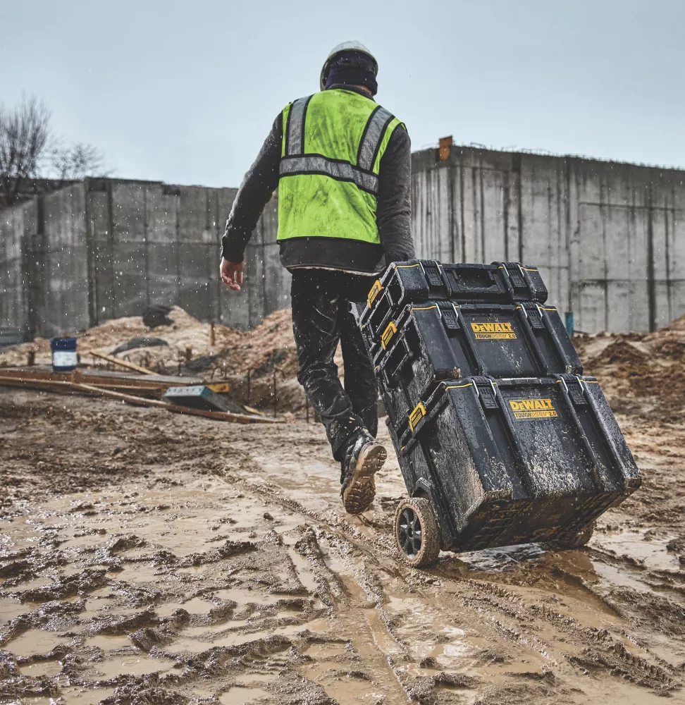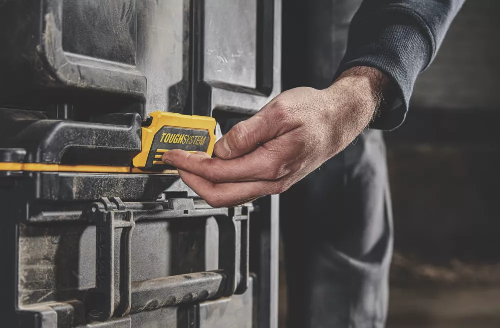 Storage system that protects tools from the toughest of site and weather conditions. Polypropylene construction with a visible IP65 water and dust seal. Features easy-to-use, time-saving latches for connecting modules together and a buckled lid with lockable plastic clamps. Supplied with an extendable / detachable handle and wheels for convenient transportation. Compatible with ToughSystem.