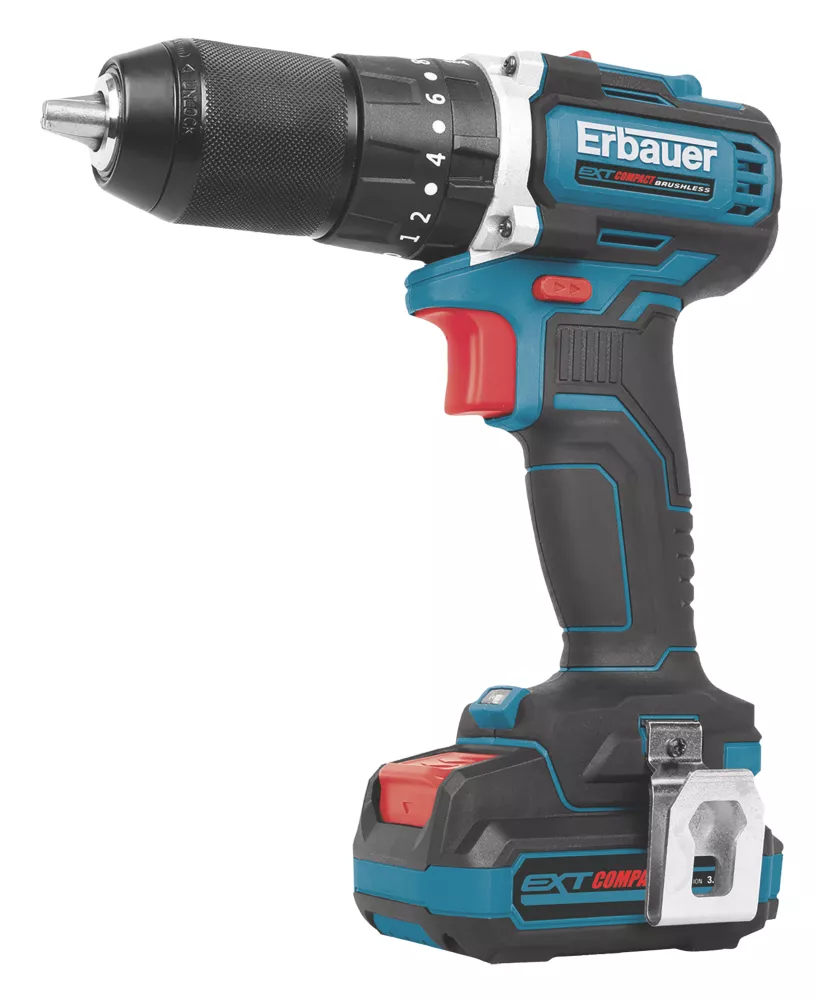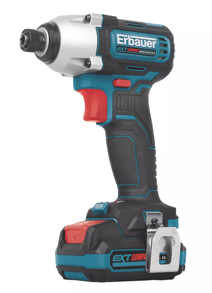 Versatile twin pack consisting of a brushless combi drill and impact driver. Ideal for working in confined and hard to reach spaces. 2-speed combi drill features 13mm chuck and LED work light. Impact driver delivers 135Nm of max torque. Only compatible with Erbauer EXT 12V batteries and chargers.