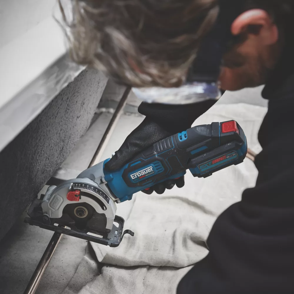 Lightweight, compact and versatile brushless circular saw. Ideal for working in confined and hard to reach spaces. Great for kitchen fitters, electricians, plumbers and carpenters. Advanced brushless motor provides more power, higher torque, longer runtime and longer motor life. Features multi-material cutting, straight and plunge cuts, quick-adjust cut depth control and vacuum port and adaptor. Only compatible with Erbauer EXT 12V batteries and chargers.