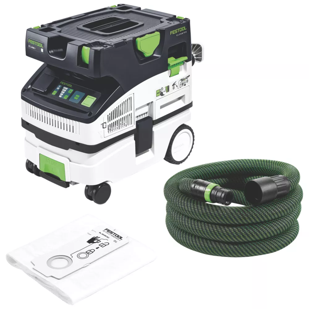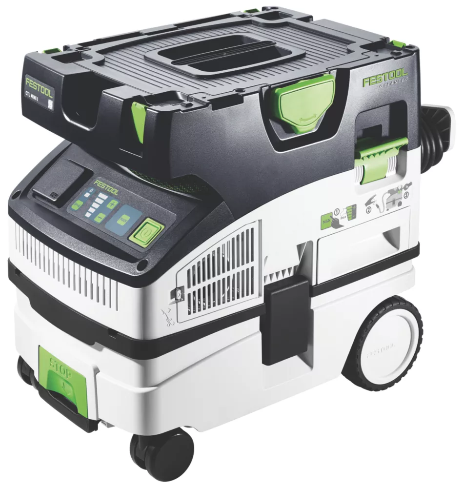 Compact and mobile dust extractor with intuitive touch operation, smooth suction hose, level storage area for tools and consumables and integrated Bluetooth technology. Manual autoclean function. Main filter changes are easy with the capability to access the filter from the outside of the unit. Includes internal hose holder, SYSTAINER T-LOC connection and practical cord holder for tidiness and speed. Conveniently ensures clean air during any service or installation work. For dust class L.