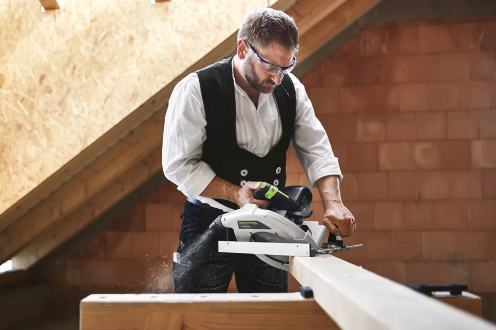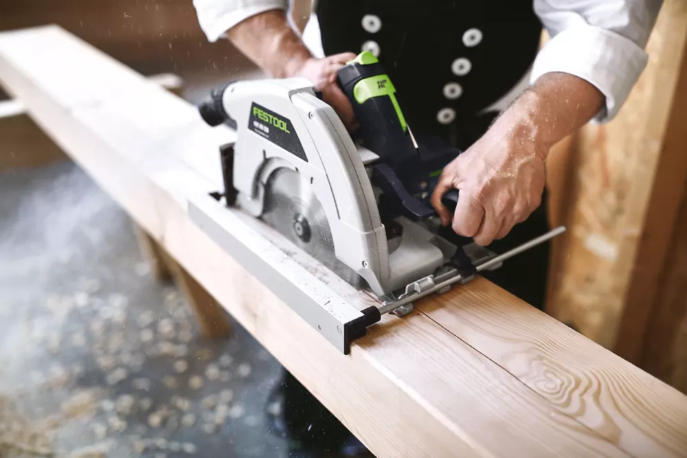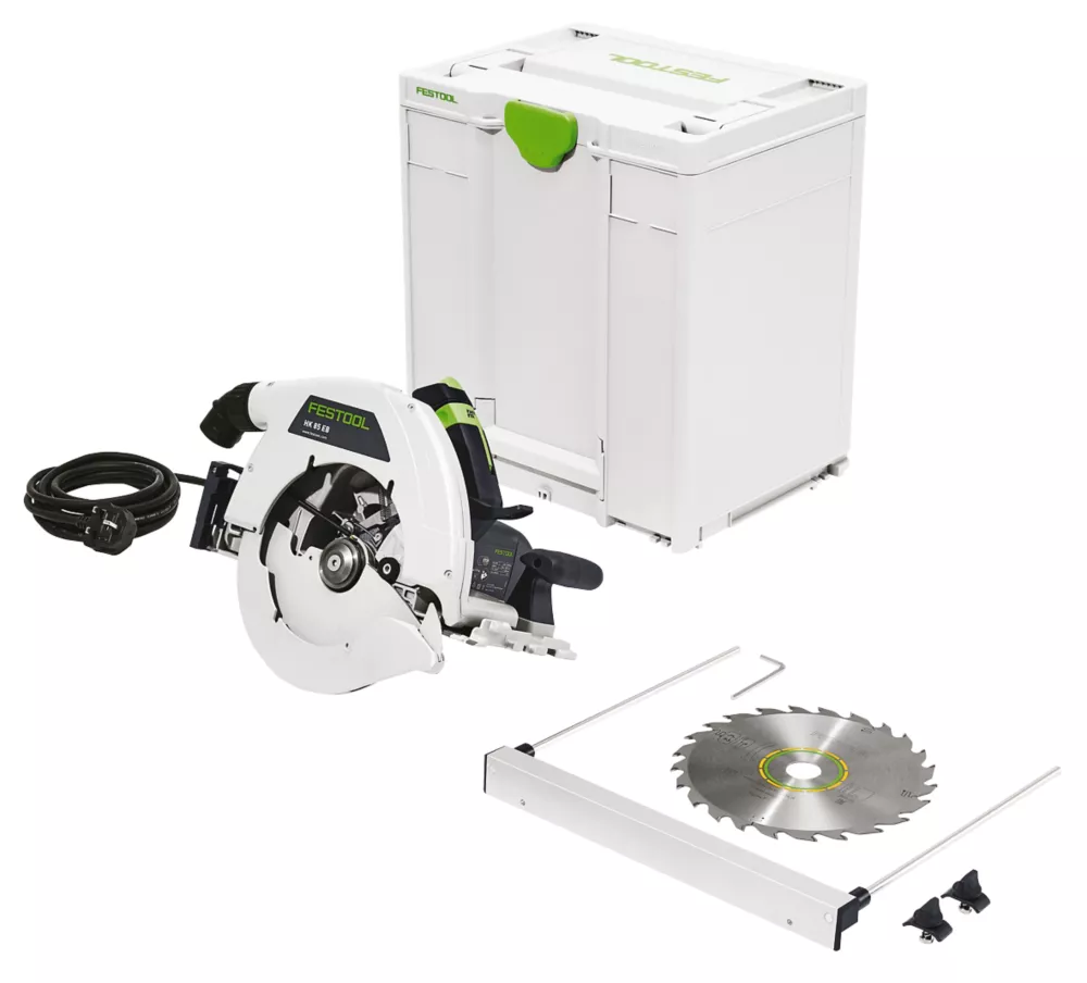 Reliable, all-purpose circular saw combines performance with ease of use. High torque motor ensures constant power when sawing. Features an adjustable groove cutter. Capable of rip and cross cuts in materials up to 85mm thick. Supplied with blade, side fence and heavy duty carry case. Rails not included.