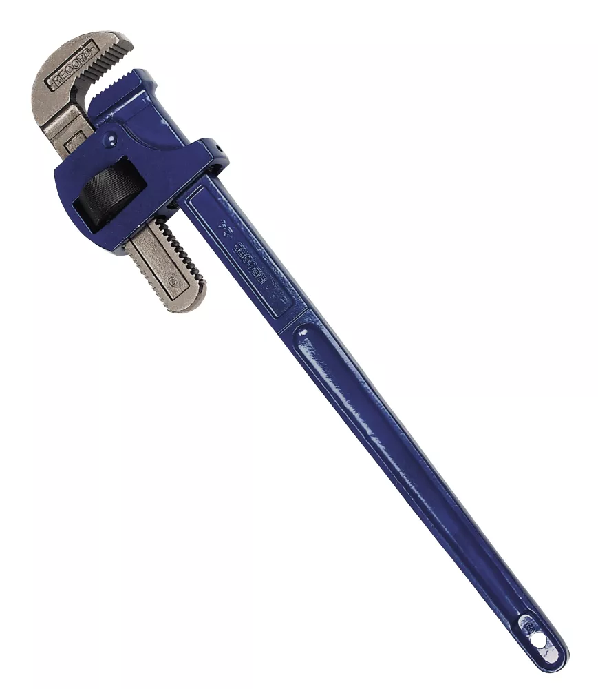 Flame-hardened and tempered V-shaped tooth profile provides grip on pipes. Quick-adjusting jaw ratchets and releases quickly and smoothly.