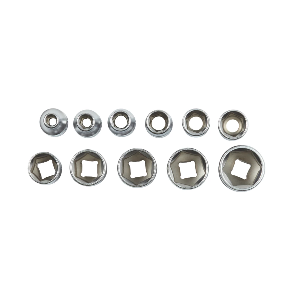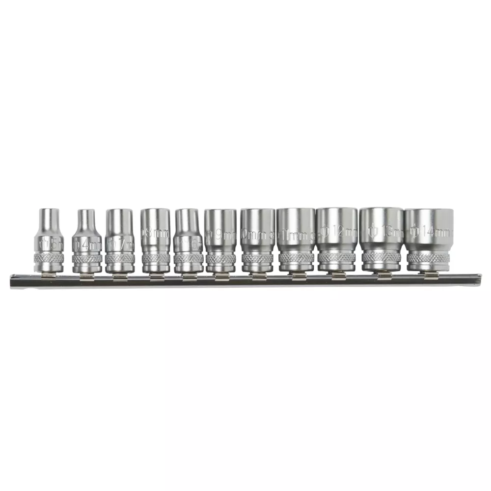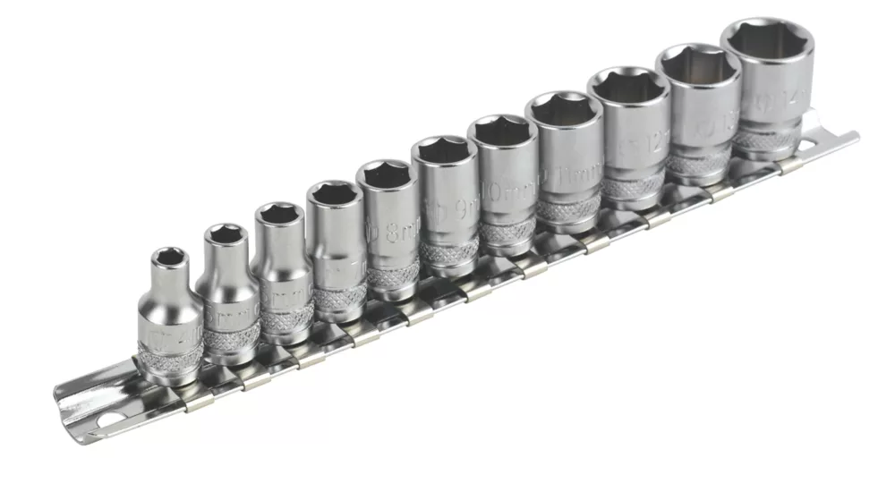 Standard deep socket rail for loosening and tightening bolts or screws in motoring maintenance or general home use. Precision-ground hardened tool-grade chrome vanadium steel for extra strength and durability. Chamfered lead-in sockets for easy placement onto drive tools and fasteners.
