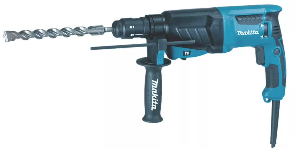 Powerful 800W motor, with variable speed controlled by trigger, to deliver up to 1200rpm. Equipped with 3-mode operation for rotary only, rotary with hammer and hammer only. 40 different bit angle settings, one-touch sliding chuck, recessed lock-on button for continuous use and easy bit installations and removals, depth stop and torque limiter to stop the rotation if the bit jams or hits against reinforcement. Fitted with a modified operation mode change lever to enable the user to switch from rotary to hammer mode and vice-versa without having to rotate the chuck.