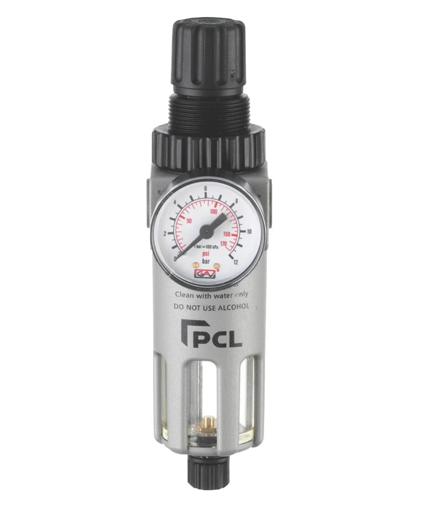 Designed to eliminate moisture and particulates from the air flow. The unit efficiently filters to 10 microns and features a polycarbonate to easily monitor levels, surrounded with protective metal as a safety measure. Supplied with wall bracket.