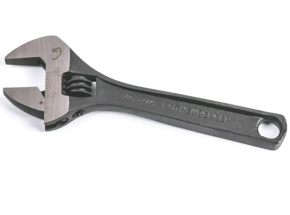 Professional quality adjustable wrench designed for use on small nuts and bolts in extremely confined spaces.