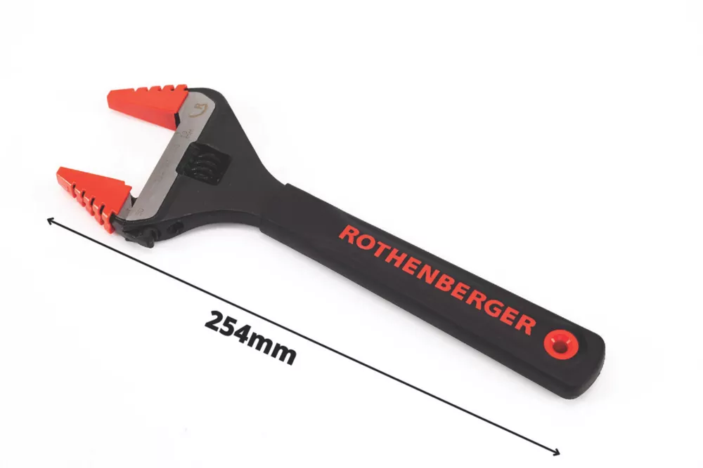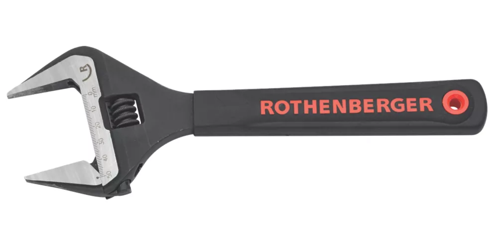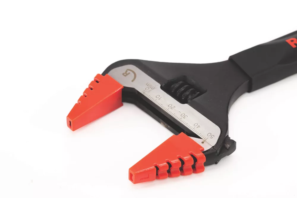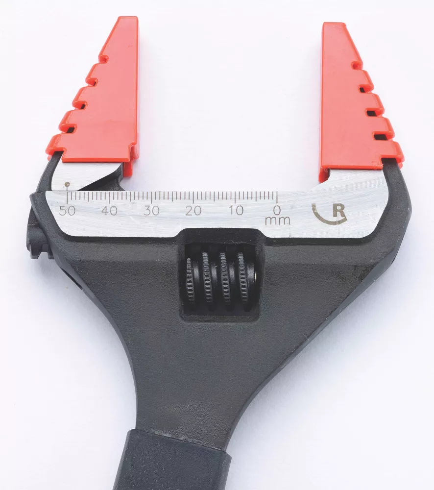 Chrome vanadium steel construction with extra wide opening jaw. Slimline angled jaw profile ideal for use when working in confined spaces. Features a smooth, accurate adjustment thumbturn and the polished jaws are laser-etched for accurate size adjustment. Anti-slip, ergonomic soft-grip handles provide a comfortable grip when in use. Supplied with removable soft-grip jaw protectors to prevent damaging chromed or polished surfaces.
