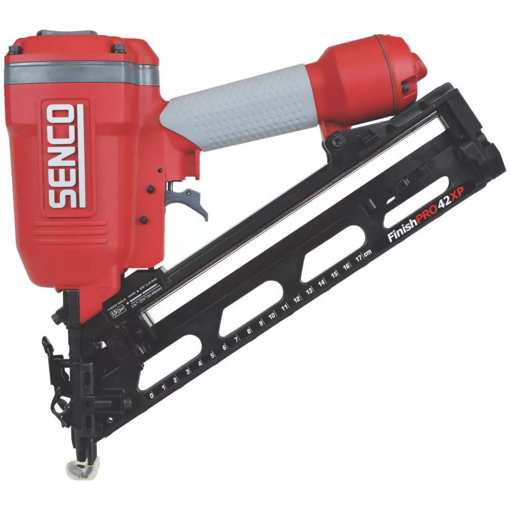 Drives 15 gauge finish nails ranging in length from 32mm to 65mm. Rugged internal engine design with NeverLube technology ensures no lubrication required. Magnesium housing is lightweight and comfortable to use all day. Thumb wheel adjustable depth of drive. EZ-Clear latch clears jams quickly. 360° adjustable exhaust. 2 no-mark pads with on-board storage to protect work materials. Advanced belt hook.
