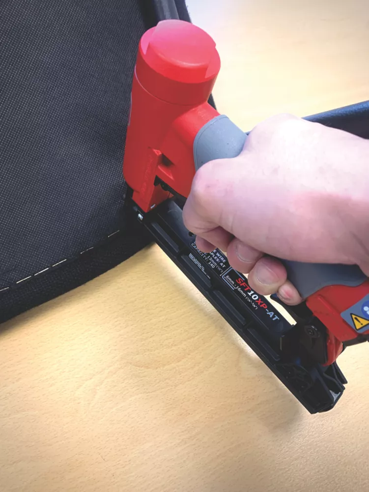 Pneumatic fine wire stapler driving 21 gauge staples ranging in length between 4 and 16mm. Suitable for a wide variety of applications such as upholstering operations, furniture assembly, moulding and roofing felt, and bedding manufacture. Heavy-duty steel cap. Superior balance with minimal recoil. One-handed magazine opening ensures increased productivity with less downtime. Rear exhaust directs oil and dust away from the work surface. Comfort grip reduces fatigue. Short trigger stroke for quick and precise operation.