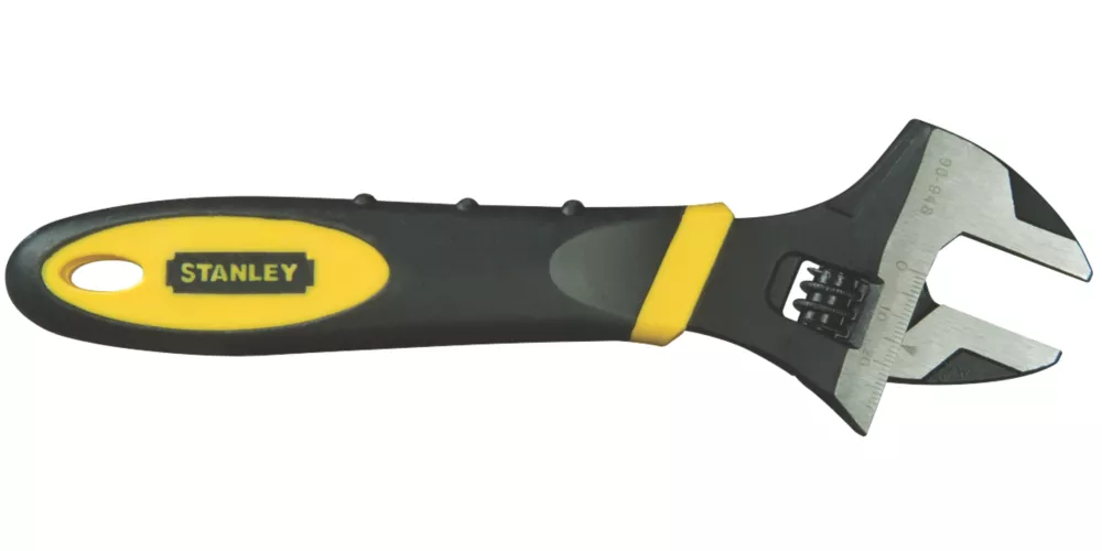 Adjustable wrench with narrow head design for applications in areas with limited space. Laser-marked SAE and metric jaw scale for easy fastener size selection. Forged steel alloy body increases strength and torque capacity and allows for a thin profile. Rubber-moulded bi-material handle provides secure grip and comfort. Ideal for automotive maintenance and repair, plumbing and general assembly tasks.