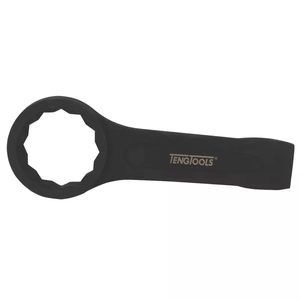 Ring-ended slogging spanner with block-end handle specifically designed for use with a hammer. Used to release large nuts and bolts where the shock of the impact is useful in breaking rust or paint.