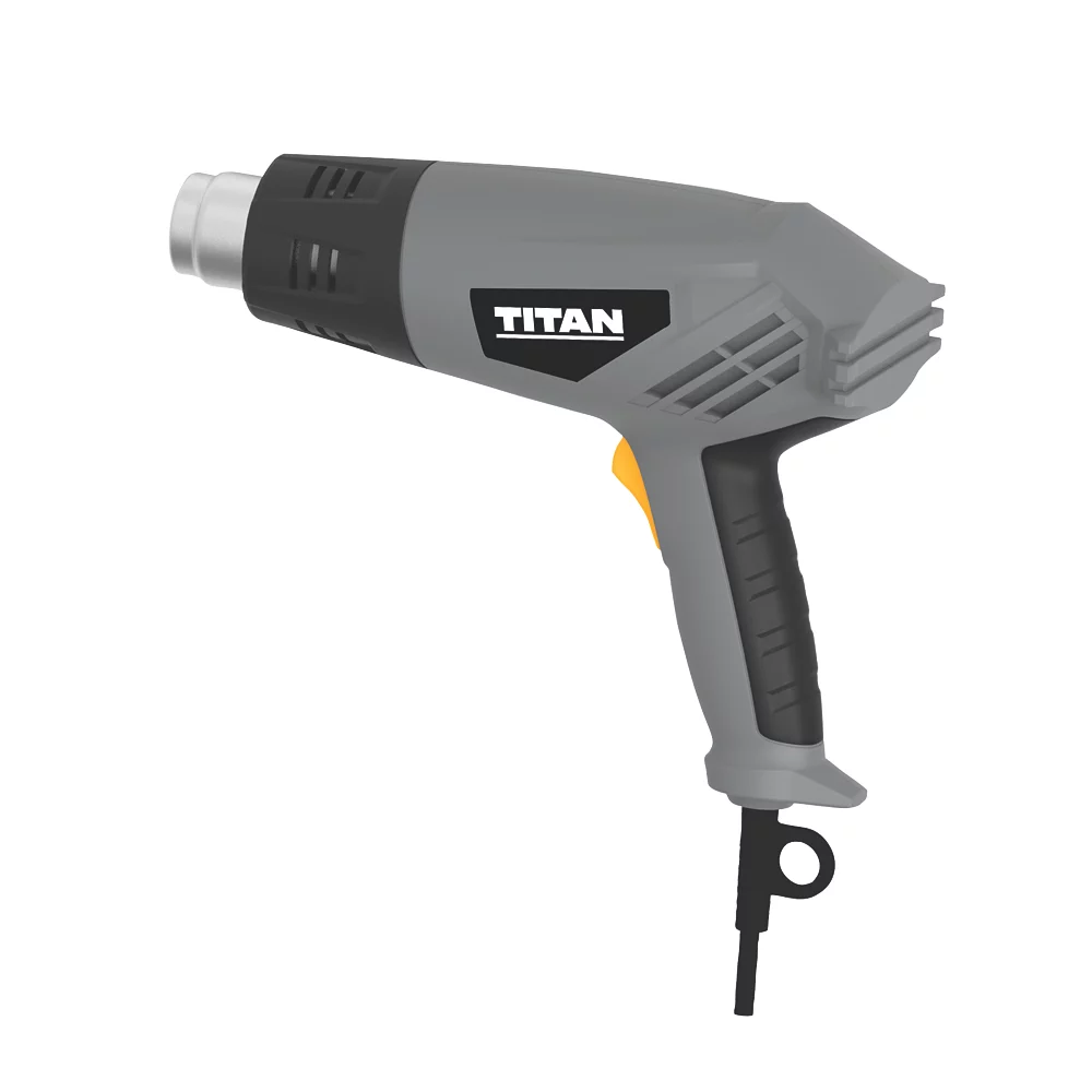 Titan heat gun with 2 operating temperatures. Ideal for DIY restoration, paint stripping, loosening adhesive, bending copper pipes, loosening rusted bolts, lighting barbecues and more.