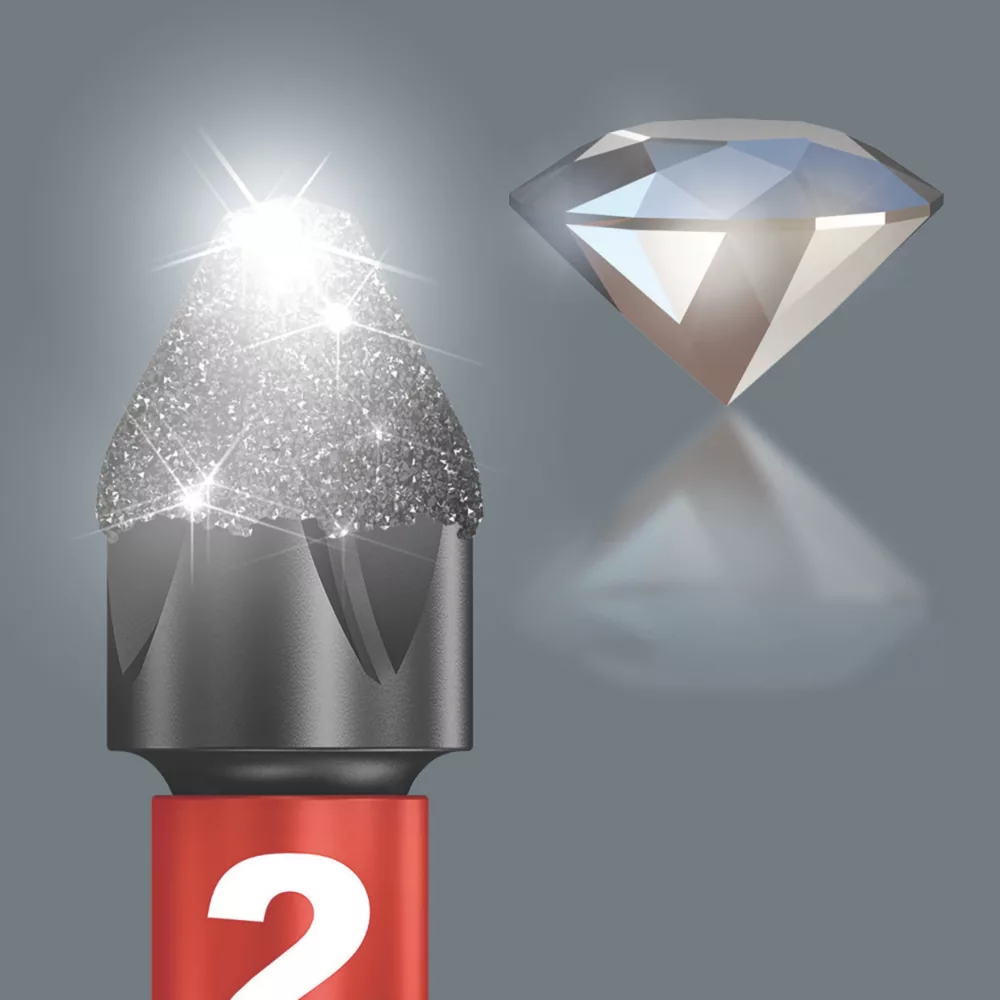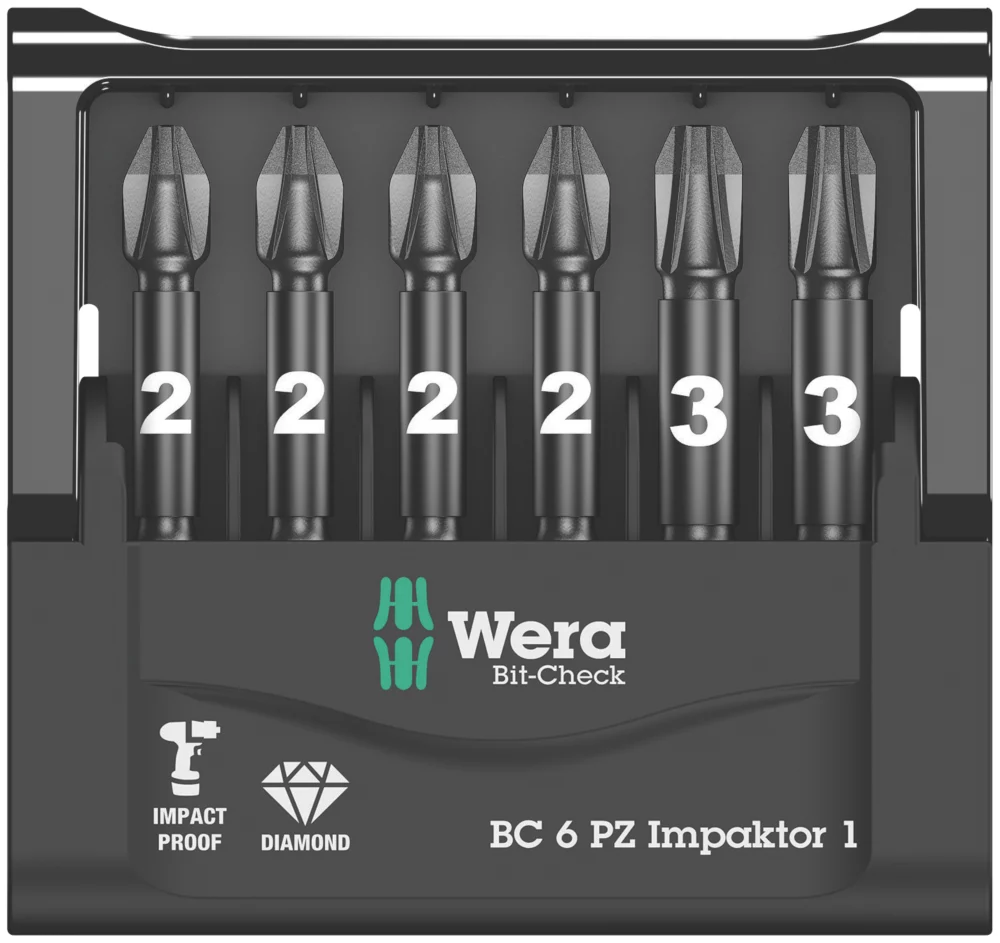 Stored in a slim and compact case for tool security and easy bit selection. Specifically designed for cordless impact drivers. Diamond-coated bits for anti cam-out. TriTorsion system means that together the bit and holder have three torsion zones to absorb the stresses applied by constant use in impact drivers. Drive and size are colour coded for easy selection of the right bit.
