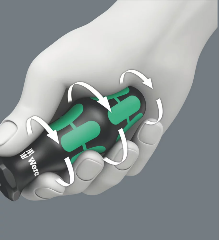 Kraftform Kompakt 62 series offers both power and screwdriving capabilities. Ergonomic Kraftform handle has been designed to perfectly fit the hand, the hard and soft zones work together to provide fantastic grip and rapid twisting making screwdriving an ease. Rapidaptor technology allows for rapid bit change without any extra tools and also only requires one-handed use. Rapid-in allows the bit to be inserted without moving the sleeve, thanks to a self-lock mechanism the bit automatically locks in securely. Rapid-out allows for the bit to be changed by simply pushing the sleeve forward, this works via a spring mechanism lifting the bit off the magnet. Rapid-spin, a free-turning sleeve that allows screw steadying at the start of the screwdriving process. This makes it easier to apply the tool to the screw and also prevents any slipping from occurring.