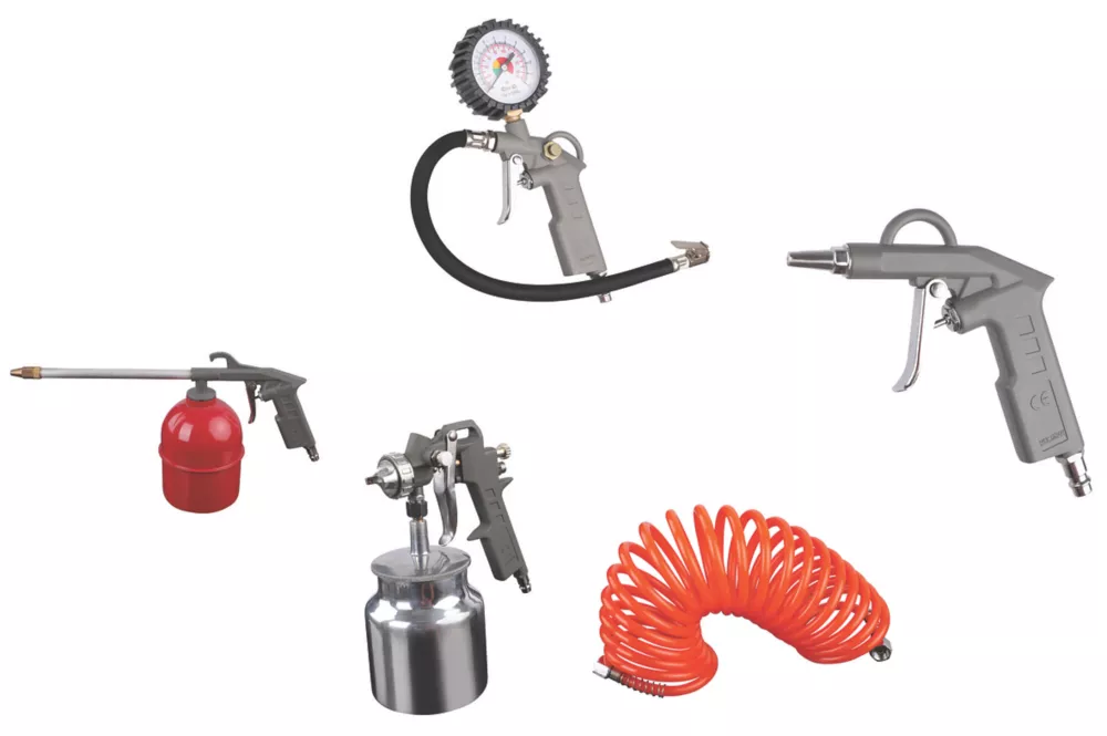 Can operate a wide variety of professional air tools. Features a powerful 2200W motor. Includes 2 quick release couplings for quick connection of a variety of pneumatic tools, 2 working pressure gauges and a 5 piece air tool kit. Ideal for garage, car body workshops and joinery workshops.
